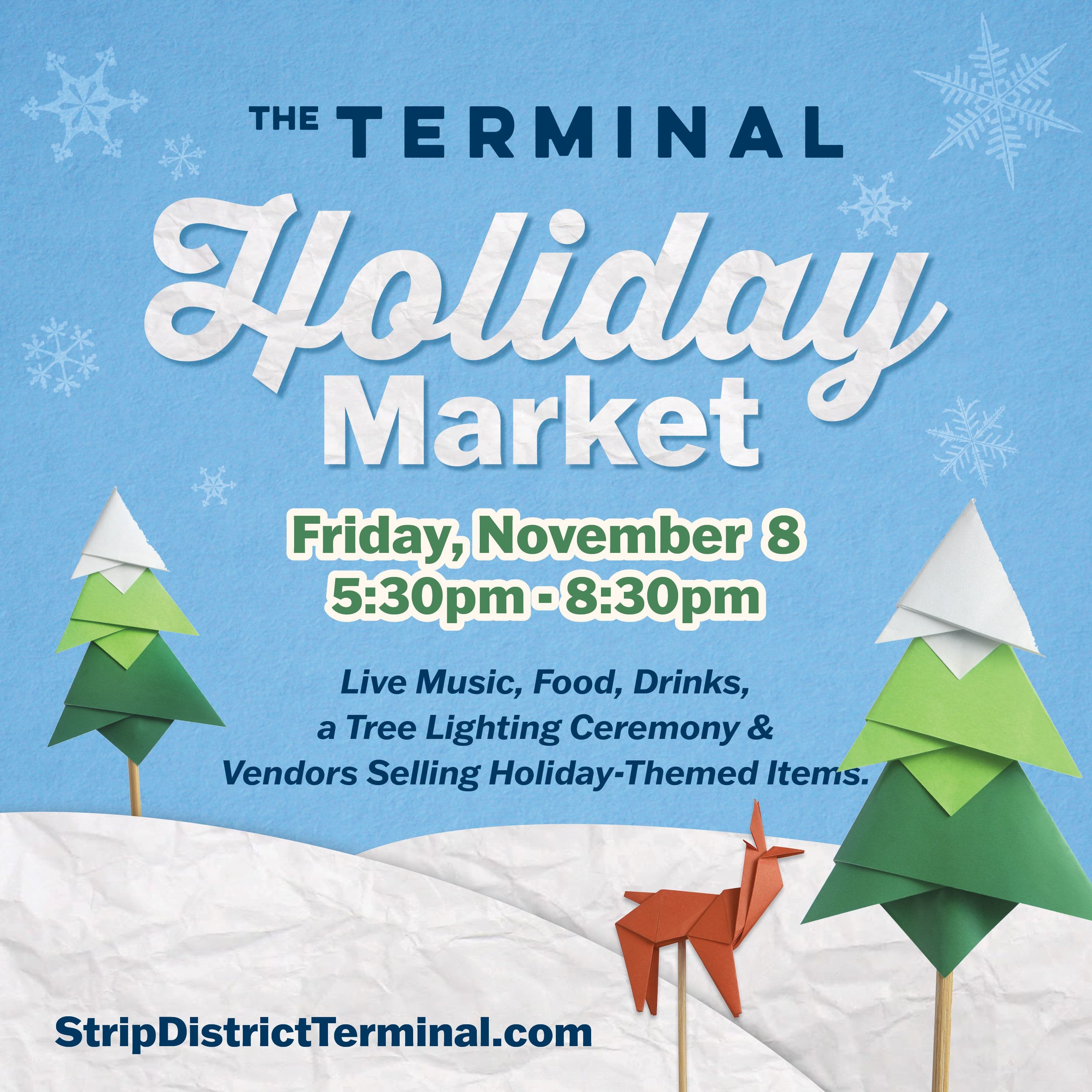 Join us as we turn the lights on the Terminal Christmas Tree and celebrate with a special Holiday Market featuring local vendors alongside Terminal retailers. Enjoy food, warm drinks, and live music from You Pick Entertainment's Gabby & Eddie from 5:30 - 8:30 PM!
